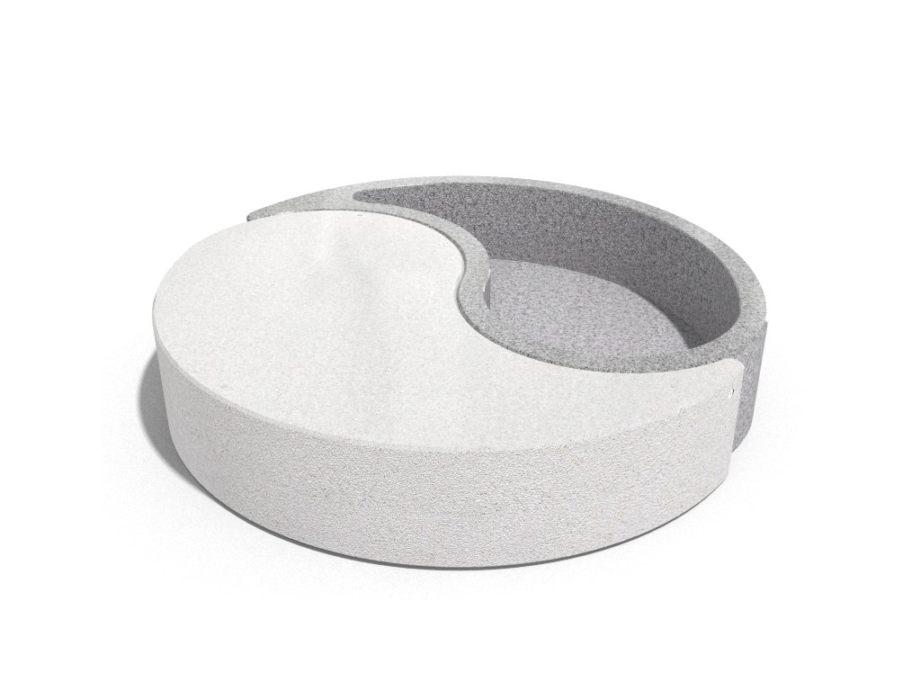 Betonový květináč s lavičkou ze série Yin and Yang. Je vyroben z vysoce odolného betonu s homogenní strukturou kameniva. Struktura kameniva je složena z přírodních mramorových nebo žulových kamenů s definovanou velikostí a možností různých barevných kombinací. Boční plochy jsou reliéfní a sedací plocha je jemně leštěná. Výrobek je ošetřen ochranným nátěrem, který snižuje usazování nečistot a zvyšuje odolnost vůči agresivním povětrnostním podmínkám. Výrobek je dodáván kompletně smontovaný.