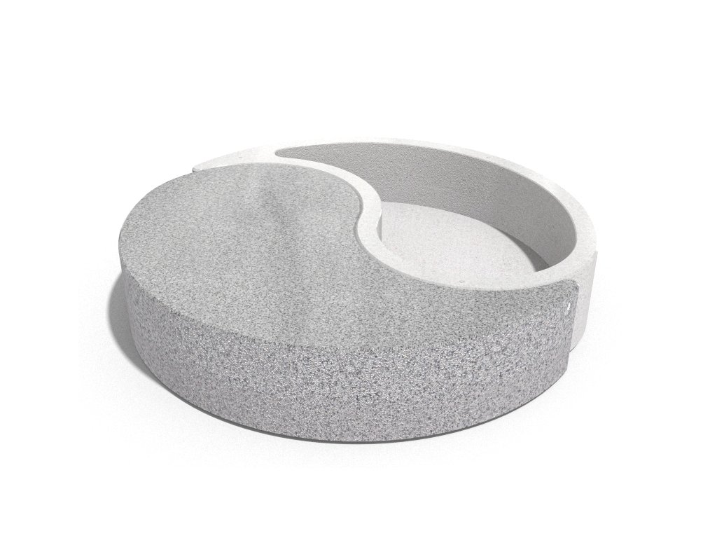 Betonový květináč s lavičkou ze série Yin and Yang. Je vyroben z vysoce odolného betonu s homogenní strukturou kameniva. Struktura kameniva je složena z přírodních mramorových nebo žulových kamenů s definovanou velikostí a možností různých barevných kombinací. Boční plochy jsou reliéfní a sedací plocha je jemně leštěná. Výrobek je ošetřen ochranným nátěrem, který snižuje usazování nečistot a zvyšuje odolnost vůči agresivním povětrnostním podmínkám. Výrobek je dodáván kompletně smontovaný.
