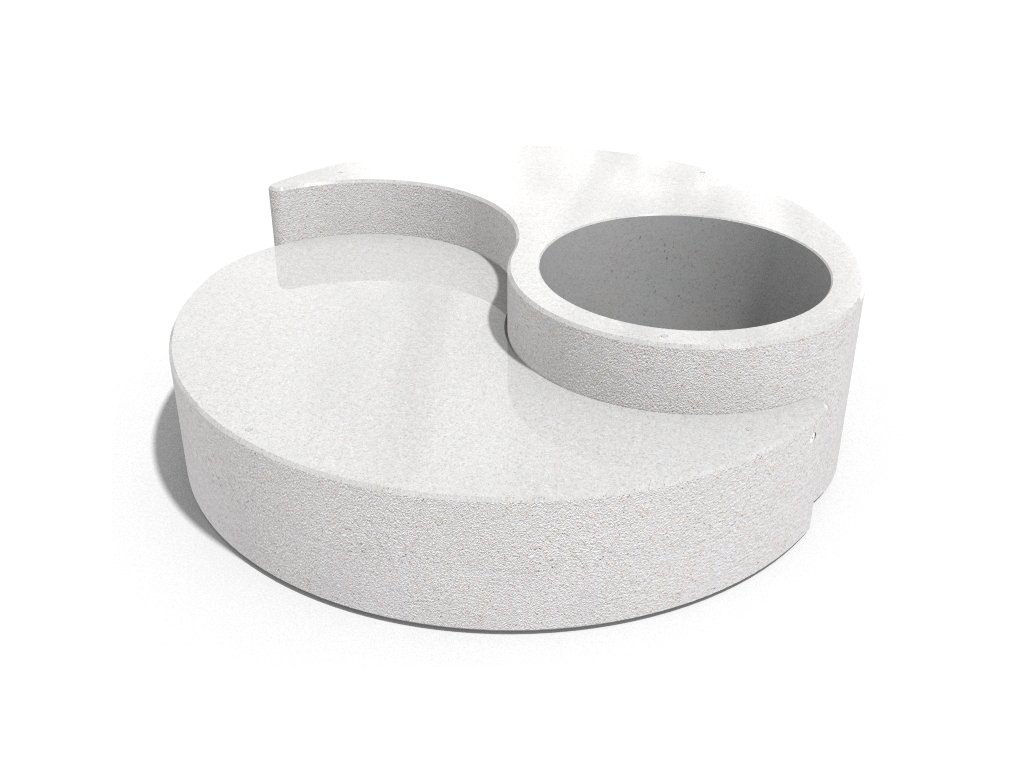 Betonový květináč s lavicí ze série Yin and Yang. Je vyroben z vysoce odolného betonu s homogenní strukturou kameniva . Struktura kameniva se skládá z přírodního mramoru nebo žuly s definovanou velikostí a možností různých barevných kombinací. Boční plochy jsou reliéfní a sedák je jemně leštěný. Výrobek je ošetřen ochranným nátěrem, který snižuje usazování nečistot a zvyšuje odolnost vůči agresivním povětrnostním podmínkám. Výrobek je dodáván kompletně smontovaný.