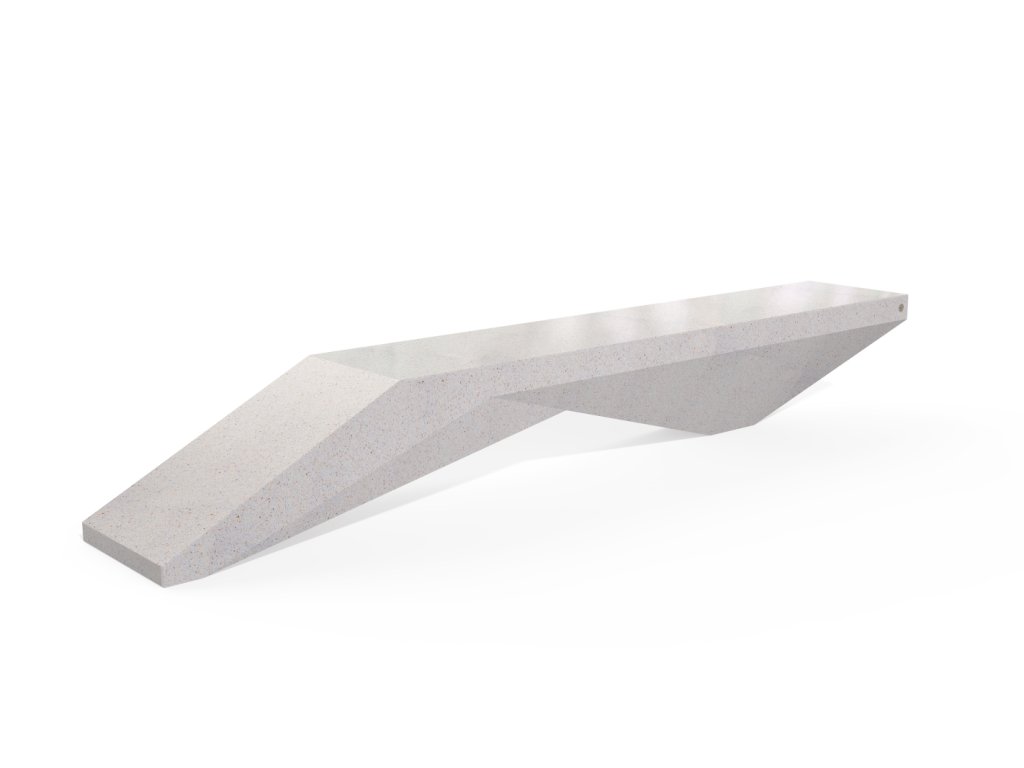Betonová lavička vyrobená z vysoce odolného vyztuženého vláknobetonu z přírodního mramoru nebo žuly v různých barevných kombinacích. Všechny povrchy jsou leštěny a opatřeny dalším ochranným nátěrem, díky kterému je výrobek ještě odolnější vůči agresivním povětrnostním podmínkám, snižuje usazování nečistot a zlepšuje hydrofobní vlastnosti betonu. Čistý geometrický tvar a jemné linie umožňují eleganci lavičky vytvářet ještě krásnější městské prostory.