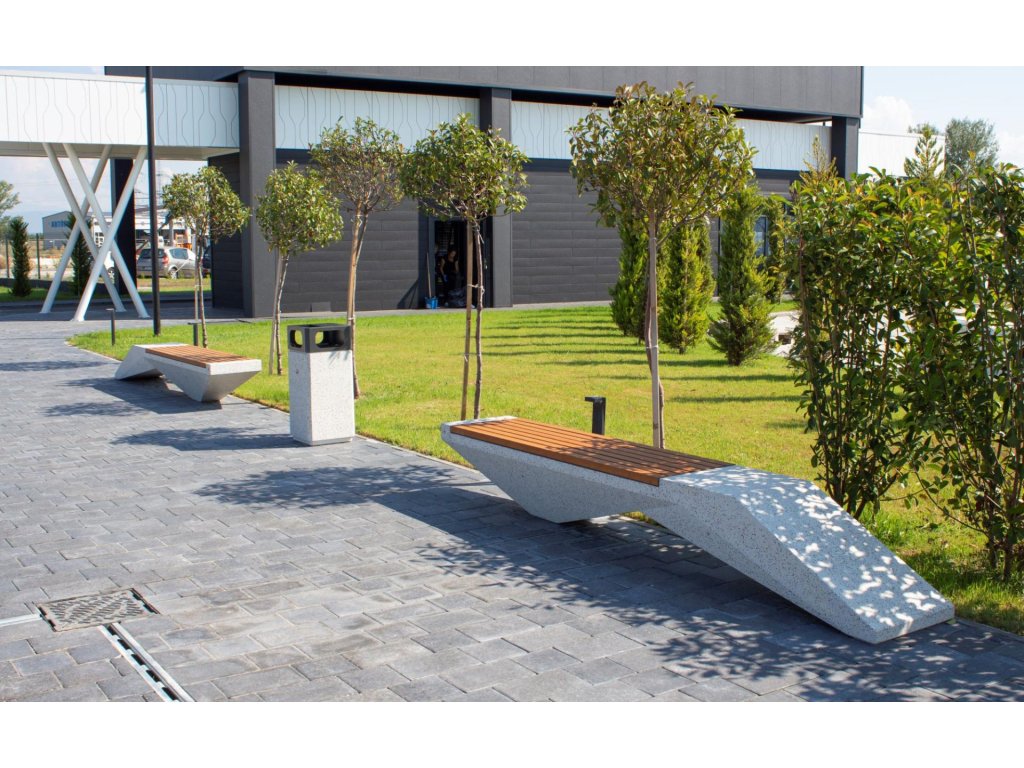 Stylové designové řešení, které se opírá o proporce a rovnováhu mezi dvěma různými materiály. Lavice je vyrobena z vysoce kvalitního vyztuženého vláknobetonu a leštěného kameniva. Strukturní mramor a žula jsou přírodní a nabízejí potenciál pro různé barevné kombinace. Betonová lavička je kombinována s certifikovaným bambusovým dřevem. Dodatečná úprava leštěného povrchu ochranným nátěrem činí výrobek ještě odolnějším vůči agresivním povětrnostním podmínkám a snižuje usazování nečistot. Lavice je moderní dekorací pro městský exteriér. Speciálně vybrané exotické dřevo přináší pocit „blízkosti přírodě“.