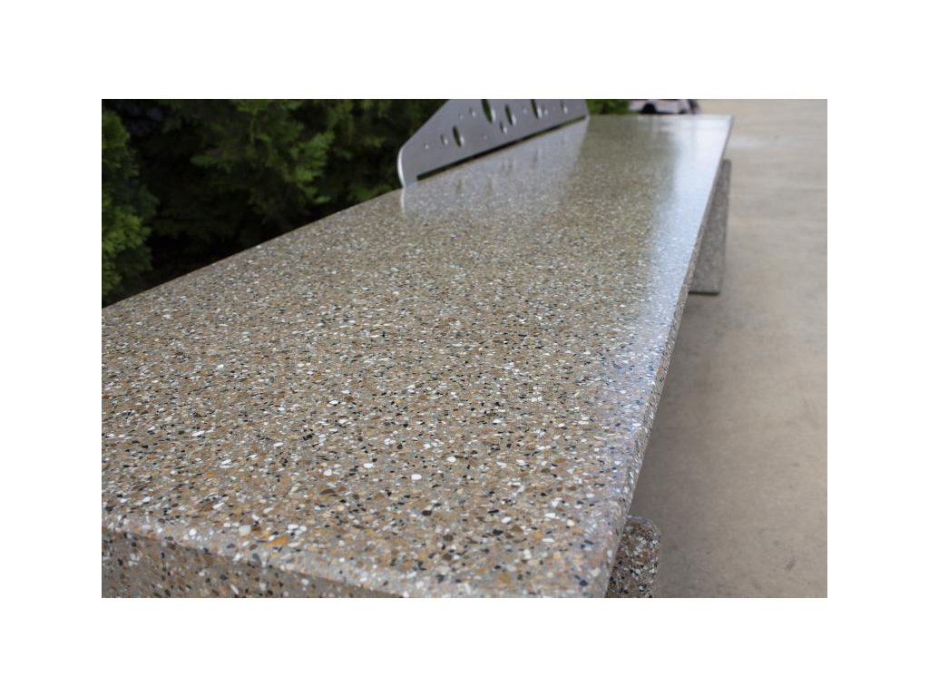 Betonová lavička s opěradlem vyrobená z vysoce odolného vyztuženého vláknobetonu s kamenivem z přírodního mramoru nebo žuly, v různých barevných kombinacích.
