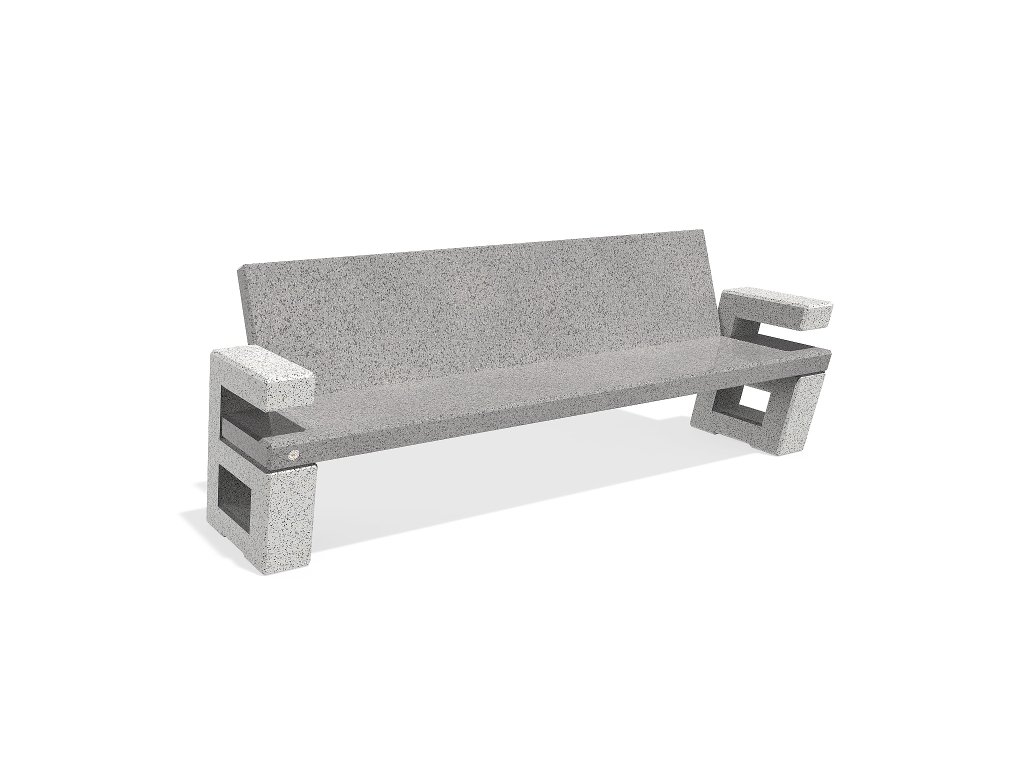 Betonová lavička s opěradlem, vyrobená z vysoce odolného vyztuženého vláknobetonového kameniva z přírodního mramoru nebo žuly, v různých barevných kombinacích. Všechny povrchy jsou leštěné a dále lakované, což činí výrobek ještě odolnějším vůči agresivním povětrnostním podmínkám, snižuje usazování nečistot a zlepšuje hydrofobní vlastnosti betonu. Čistý geometrický tvar a jemné linie umožňují eleganci lavičky vytvářet ještě krásnější městské prostory.