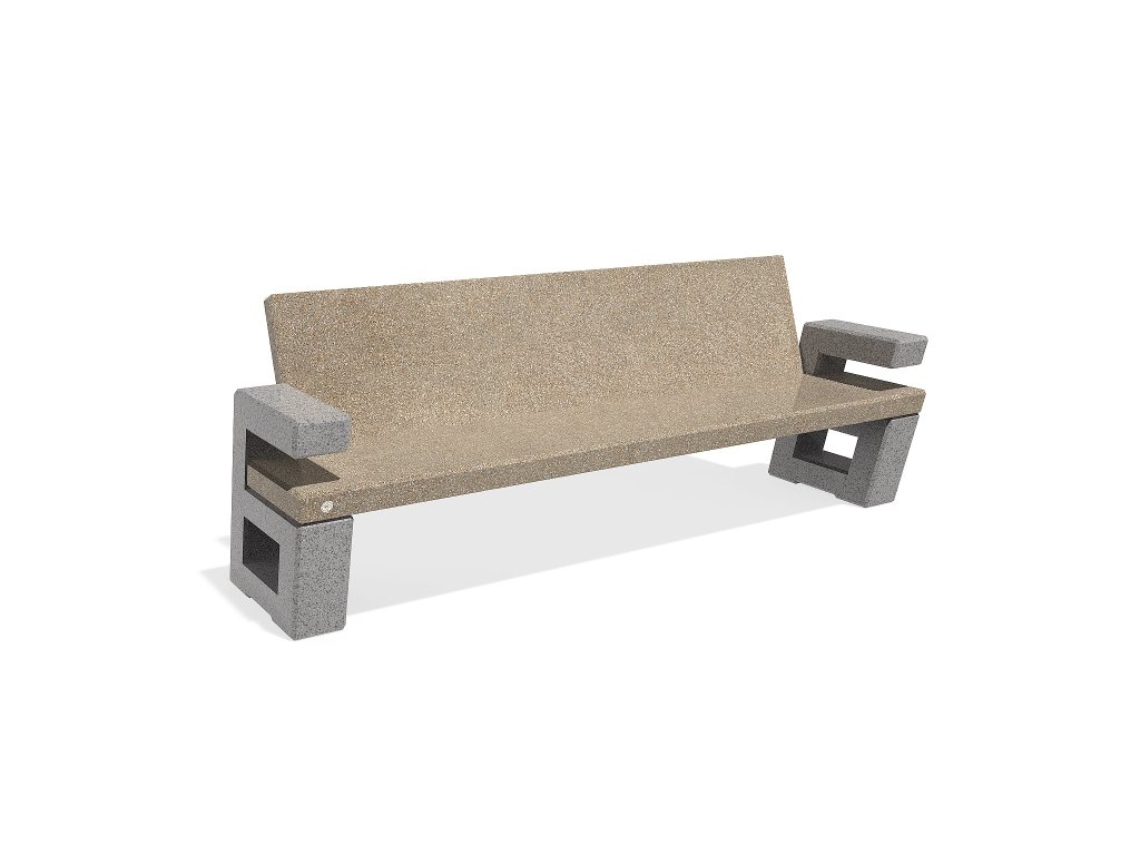 Betonová lavička s opěradlem, vyrobená z vysoce odolného vyztuženého vláknobetonového kameniva z přírodního mramoru nebo žuly, v různých barevných kombinacích. Všechny povrchy jsou leštěné a dále lakované, což činí výrobek ještě odolnějším vůči agresivním povětrnostním podmínkám, snižuje usazování nečistot a zlepšuje hydrofobní vlastnosti betonu. Čistý geometrický tvar a jemné linie umožňují eleganci lavičky vytvářet ještě krásnější městské prostory.