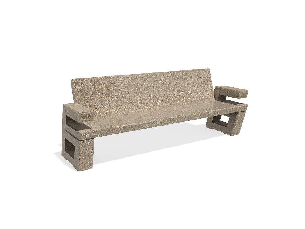Betonová lavička s opěradlem, vyrobená z vysoce odolného vyztuženého vláknobetonového kameniva z přírodního mramoru nebo žuly, v různých barevných kombinacích. Všechny povrchy jsou leštěné a dále lakované, což činí výrobek ještě odolnějším vůči agresivním povětrnostním podmínkám, snižuje usazování nečistot a zlepšuje hydrofobní vlastnosti betonu. Čistý geometrický tvar a jemné linie umožňují eleganci lavičky vytvářet ještě krásnější městské prostory.