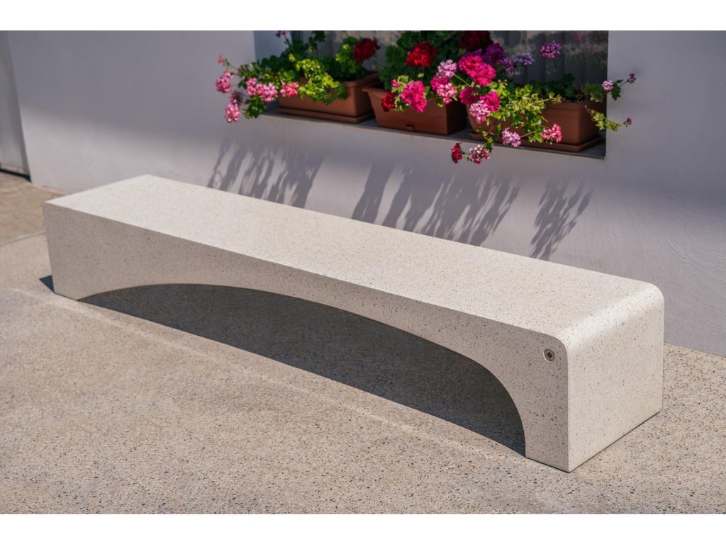 Vyrobeno z vysoce odolného železobetonu s vláknitou strukturou a přírodním kamenivem z mramoru nebo žuly o definovaných rozměrech. Betonová lavice má leštěný povrch.