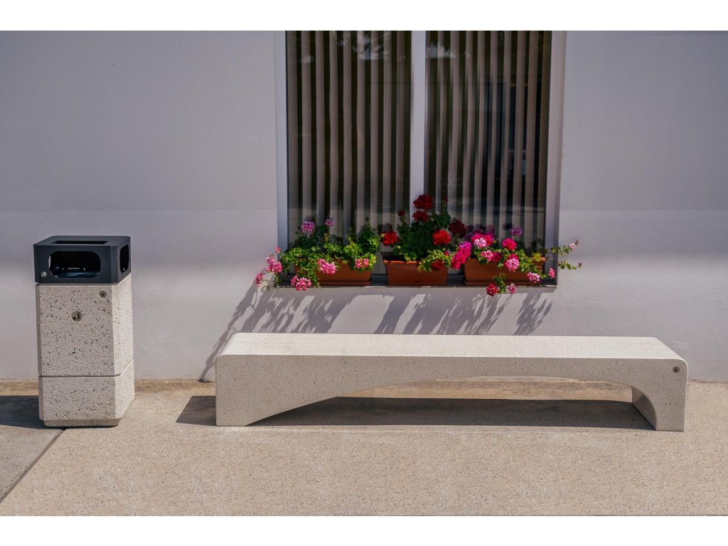 Vyrobeno z vysoce odolného železobetonu s vláknitou strukturou a přírodním kamenivem z mramoru nebo žuly o definovaných rozměrech. Betonová lavice má leštěný povrch.