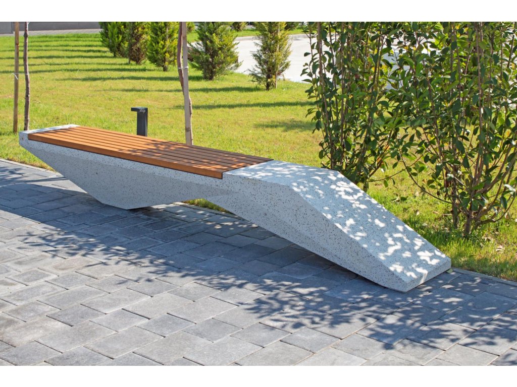 Stylové designové řešení, které se opírá o proporce a rovnováhu mezi dvěma různými materiály. Lavice je vyrobena z vysoce kvalitního vyztuženého vláknobetonu a leštěného kameniva. Strukturní mramor a žula jsou přírodní a nabízejí potenciál pro různé barevné kombinace. Betonová lavička je kombinována s certifikovaným bambusovým dřevem. Dodatečná úprava leštěného povrchu ochranným nátěrem činí výrobek ještě odolnějším vůči agresivním povětrnostním podmínkám a snižuje usazování nečistot. Lavice je moderní dekorací pro městský exteriér. Speciálně vybrané exotické dřevo přináší pocit „blízkosti přírodě“.