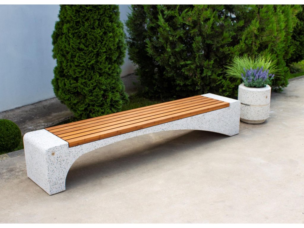 Lavice je vyrobena z vysoce odolného vyztuženého vláknobetonu a kameniva z přírodního mramoru nebo žuly.