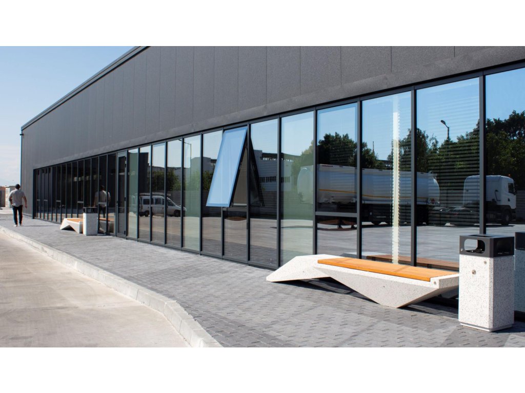 Stylové designové řešení, které se opírá o proporce a rovnováhu mezi dvěma různými materiály. Lavice je vyrobena z vysoce kvalitního vyztuženého vláknobetonu a leštěného kameniva. Strukturní mramor a žula jsou přírodní a nabízejí potenciál pro různé barevné kombinace. Betonová lavička je kombinována s certifikovaným bambusovým dřevem. Dodatečná úprava leštěného povrchu ochranným nátěrem činí výrobek ještě odolnějším vůči agresivním povětrnostním podmínkám a snižuje usazování nečistot. Lavice je moderní dekorací pro městský exteriér. Speciálně vybrané exotické dřevo přináší pocit „blízkosti přírodě“.