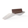 Lavice s opěradlem vyrobená z vysoce odolného betonu a exotického tvrdého dřeva - bambusu. Beton má homogenní strukturu kameniva, je vyztužen a zpevněn vlákny. Struktura kameniva je vyrobena z přírodního mramoru nebo žuly. Kameny mají specifickou velikost a lze je kombinovat v různých barvách. Povrch kameniva je jemně leštěn a vytváří pocit sametového doteku. Dodatečná úprava povrchů ochranným nátěrem činí výrobek ještě odolnějším vůči agresivním povětrnostním podmínkám a snižuje usazování nečistot. Kovové komponenty tvořící sedák a opěradlo lavice jsou vyrobeny z nerezové oceli. Sedací plocha a opěradlo jsou navrženy ve speciálně vypočítaném úhlu pro dosažení ergonomie a maximálního pohodlí. Stylové designové řešení, které se opírá o proporce a rovnováhu mezi dvěma různými materiály. Lavice je moderní dekorací městského exteriéru a pečlivě vybrané certifikované dřevo nás přibližuje přírodě.