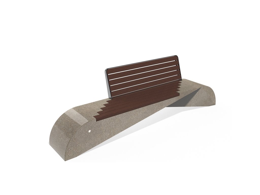 Lavice s opěradlem z produktové řady betonových laviček s charakteristickým designem, který jí dodává individualitu a styl. Lavice je vyrobena z vysoce odolného vyztuženého vláknobetonu a leštěného kameniva. Mramorové a žulové kameny, které tvoří strukturu kameniva, jsou přírodní a mají možnost různých barevných variací. Kovové komponenty tvořící sedák a opěradlo lavičky jsou vyrobeny z nerezové oceli. Betonová lavička je kombinována s certifikovaným, tvrdým bambusovým dřevem. Dodatečná úprava leštěného povrchu speciálním ochranným nátěrem činí výrobek ještě odolnějším vůči agresivním povětrnostním podmínkám a snižuje usazování nečistot. Lavice je moderní dekorací exteriéru města (pro parky, uličky, veřejná prostranství, hřiště a zahrady). Pečlivě vybrané exotické dřevo přináší pocit blízkosti přírody. Nové designové řešení, které se opírá o proporce a rovnováhu mezi dvěma různými materiály. Produkt, který splňuje i ty nejnáročnější požadavky krajinářské architektury.