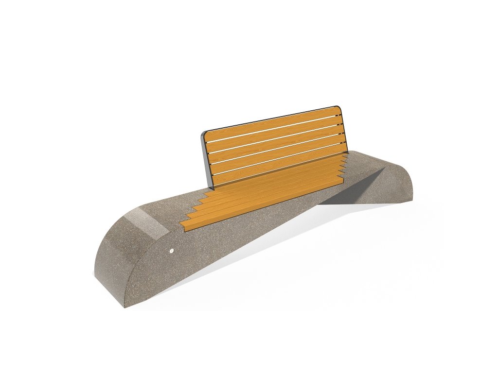 Lavice s opěradlem z produktové řady betonových laviček s charakteristickým designem, který jí dodává individualitu a styl. Lavice je vyrobena z vysoce odolného vyztuženého vláknobetonu a leštěného kameniva. Mramorové a žulové kameny, které tvoří strukturu kameniva, jsou přírodní a mají možnost různých barevných variací. Kovové komponenty tvořící sedák a opěradlo lavičky jsou vyrobeny z nerezové oceli. Betonová lavička je kombinována s certifikovaným, tvrdým bambusovým dřevem. Dodatečná úprava leštěného povrchu speciálním ochranným nátěrem činí výrobek ještě odolnějším vůči agresivním povětrnostním podmínkám a snižuje usazování nečistot. Lavice je moderní dekorací exteriéru města (pro parky, uličky, veřejná prostranství, hřiště a zahrady). Pečlivě vybrané exotické dřevo přináší pocit blízkosti přírody. Nové designové řešení, které se opírá o proporce a rovnováhu mezi dvěma různými materiály. Produkt, který splňuje i ty nejnáročnější požadavky krajinářské architektury.