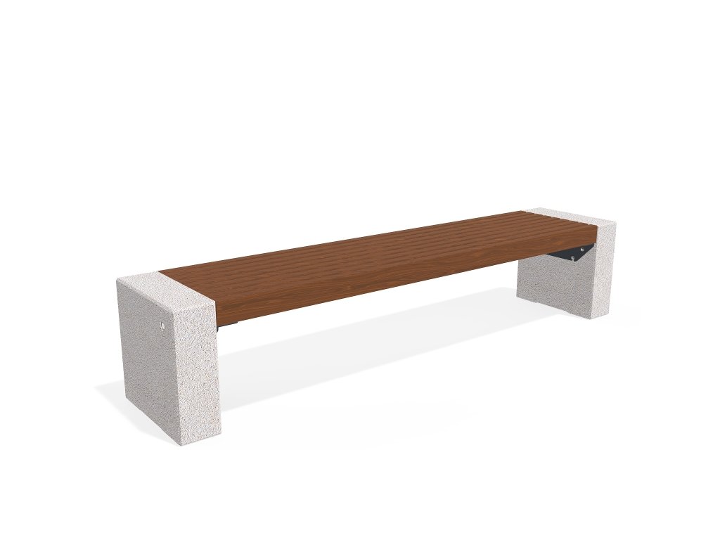 Betonová lavice s opěradlem a sedákem vyrobená z certifikovaného dřeva. Nohy jsou vyrobeny z vysoce odolného vyztuženého vláknobetonu a přírodního kameniva. Struktura kameniva je kombinací přírodních mramorových nebo žulových kamenů určité velikosti v různých barevných kombinacích. Betonový povrch má charakteristický jemný reliéf. Přidání ochranného nátěru na betonové a dřevěné komponenty činí výrobek ještě odolnějším vůči agresivním povětrnostním podmínkám. Lavice, která v sobě spojuje univerzální vitalitu moderního městského života a hodí se do jakéhokoli krajinářského designu.