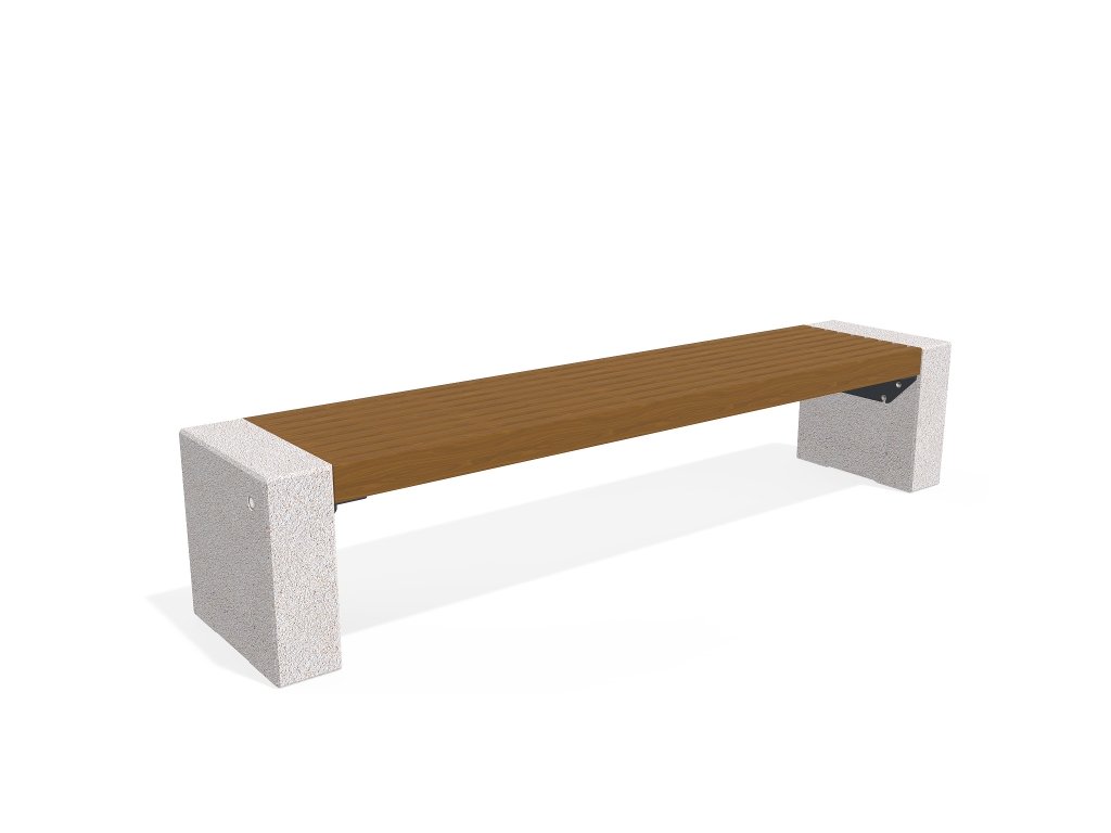 Betonová lavice s opěradlem a sedákem vyrobená z certifikovaného dřeva. Nohy jsou vyrobeny z vysoce odolného vyztuženého vláknobetonu a přírodního kameniva. Struktura kameniva je kombinací přírodních mramorových nebo žulových kamenů určité velikosti v různých barevných kombinacích. Betonový povrch má charakteristický jemný reliéf. Přidání ochranného nátěru na betonové a dřevěné komponenty činí výrobek ještě odolnějším vůči agresivním povětrnostním podmínkám. Lavice, která v sobě spojuje univerzální vitalitu moderního městského života a hodí se do jakéhokoli krajinářského designu.
