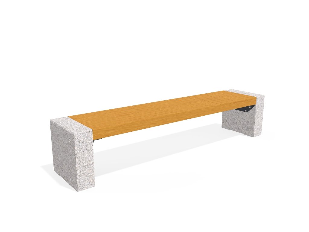 Betonová lavice s opěradlem a sedákem vyrobená z certifikovaného dřeva. Nohy jsou vyrobeny z vysoce odolného vyztuženého vláknobetonu a přírodního kameniva. Struktura kameniva je kombinací přírodních mramorových nebo žulových kamenů určité velikosti v různých barevných kombinacích. Betonový povrch má charakteristický jemný reliéf. Přidání ochranného nátěru na betonové a dřevěné komponenty činí výrobek ještě odolnějším vůči agresivním povětrnostním podmínkám. Lavice, která v sobě spojuje univerzální vitalitu moderního městského života a hodí se do jakéhokoli krajinářského designu.