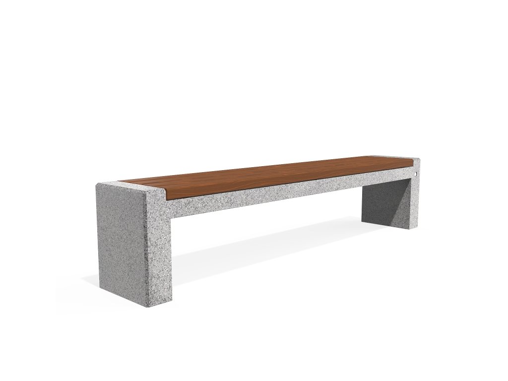 Tento model lavičky je součástí produktové řady orientované na otevřené městské prostory. Elegantní rozšíření betonové lavičky modelu 157 v kombinaci s teplem certifikovaného dřeva. Lavička je vyrobena z vysoce odolného vyztuženého vláknobetonu a přírodního kameniva. Konstrukce je provedena v různých barevných kombinacích a skládá se z přírodního mramoru nebo žuly. Sedací plocha je speciálně navržena a neumožňuje zadržování vody pod dřevěnými prvky. Toto technické řešení a ochranný nátěr dřevěných prken prodlužuje jejich životnost a zabraňuje jejich hnilobě. Všechny betonové povrchy jsou leštěny a lakovány, což činí výrobek ještě odolnějším vůči agresivním povětrnostním podmínkám. Praktické řešení pro moderní městské prostory.