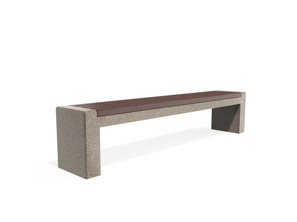 Tento model lavičky je součástí produktové řady orientované na otevřené městské prostory. Elegantní rozšíření betonové lavičky modelu 157 v kombinaci s teplem certifikovaného dřeva. Lavička je vyrobena z vysoce odolného vyztuženého vláknobetonu a přírodního kameniva. Konstrukce je provedena v různých barevných kombinacích a skládá se z přírodního mramoru nebo žuly. Sedací plocha je speciálně navržena a neumožňuje zadržování vody pod dřevěnými prvky. Toto technické řešení a ochranný nátěr dřevěných prken prodlužuje jejich životnost a zabraňuje jejich hnilobě. Všechny betonové povrchy jsou leštěny a lakovány, což činí výrobek ještě odolnějším vůči agresivním povětrnostním podmínkám. Praktické řešení pro moderní městské prostory.