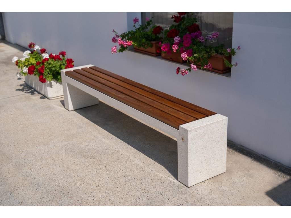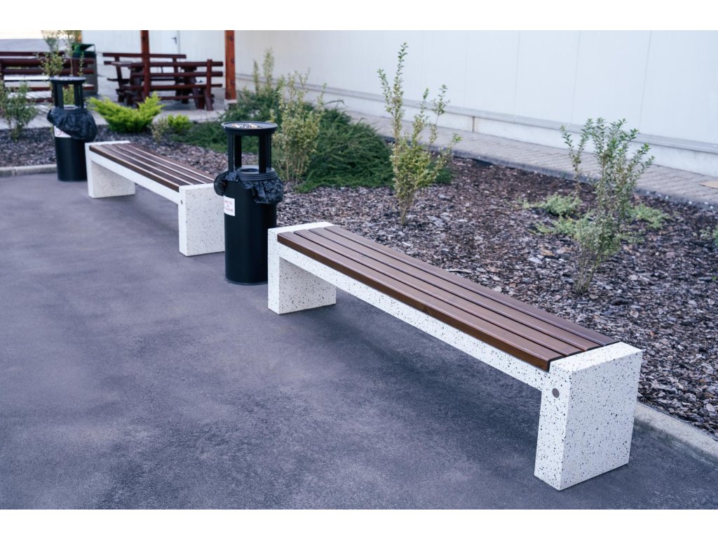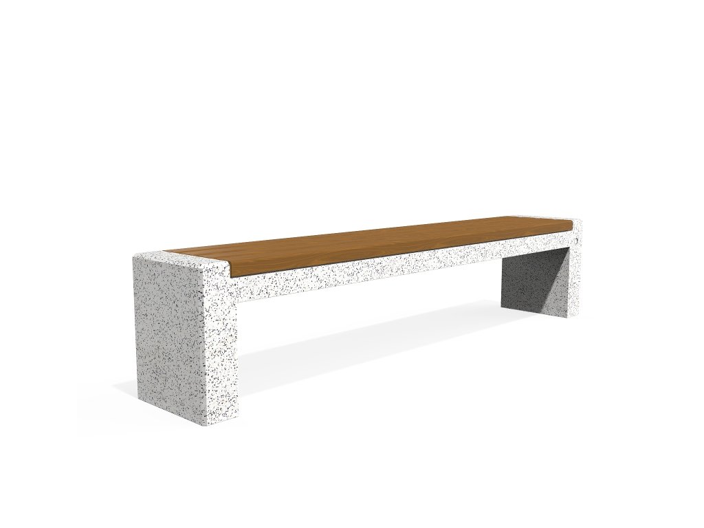 Tento model lavičky je součástí produktové řady orientované na otevřené městské prostory. Elegantní rozšíření betonové lavičky modelu 157 v kombinaci s teplem certifikovaného dřeva. Lavička je vyrobena z vysoce odolného vyztuženého vláknobetonu a přírodního kameniva. Konstrukce je provedena v různých barevných kombinacích a skládá se z přírodního mramoru nebo žuly. Sedací plocha je speciálně navržena a neumožňuje zadržování vody pod dřevěnými prvky. Toto technické řešení a ochranný nátěr dřevěných prken prodlužuje jejich životnost a zabraňuje jejich hnilobě. Všechny betonové povrchy jsou leštěny a lakovány, což činí výrobek ještě odolnějším vůči agresivním povětrnostním podmínkám. Praktické řešení pro moderní městské prostory.