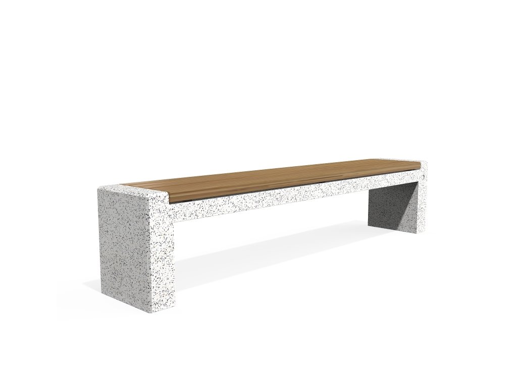 Tento model lavičky je součástí produktové řady orientované na otevřené městské prostory. Elegantní rozšíření betonové lavičky modelu 157 v kombinaci s teplem certifikovaného dřeva. Lavička je vyrobena z vysoce odolného vyztuženého vláknobetonu a přírodního kameniva. Konstrukce je provedena v různých barevných kombinacích a skládá se z přírodního mramoru nebo žuly. Sedací plocha je speciálně navržena a neumožňuje zadržování vody pod dřevěnými prvky. Toto technické řešení a ochranný nátěr dřevěných prken prodlužuje jejich životnost a zabraňuje jejich hnilobě. Všechny betonové povrchy jsou leštěny a lakovány, což činí výrobek ještě odolnějším vůči agresivním povětrnostním podmínkám. Praktické řešení pro moderní městské prostory.