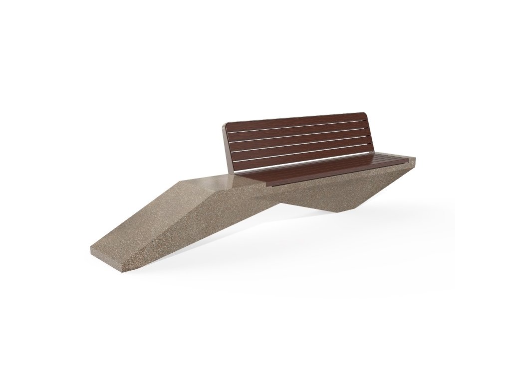 Lavice s opěradlem vyrobená z vysoce odolného betonu a exotického tvrdého dřeva - bambusu. Beton má homogenní strukturu kameniva, je vyztužen a zpevněn vlákny. Struktura kameniva je vyrobena z přírodního mramoru nebo žuly. Kameny mají specifickou velikost a lze je kombinovat v různých barvách. Povrch kameniva je jemně leštěn a vytváří pocit sametového doteku. Dodatečná úprava povrchů ochranným nátěrem činí výrobek ještě odolnějším vůči agresivním povětrnostním podmínkám a snižuje usazování nečistot. Kovové komponenty tvořící sedák a opěradlo lavice jsou vyrobeny z nerezové oceli. Sedací plocha a opěradlo jsou navrženy ve speciálně vypočítaném úhlu pro dosažení ergonomie a maximálního pohodlí. Stylové designové řešení, které se opírá o proporce a rovnováhu mezi dvěma různými materiály. Lavice je moderní dekorací městského exteriéru a pečlivě vybrané certifikované dřevo nás přibližuje přírodě.