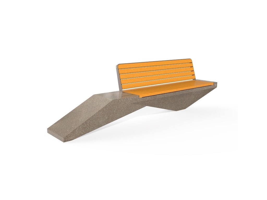 Lavice s opěradlem vyrobená z vysoce odolného betonu a exotického tvrdého dřeva - bambusu. Beton má homogenní strukturu kameniva, je vyztužen a zpevněn vlákny. Struktura kameniva je vyrobena z přírodního mramoru nebo žuly. Kameny mají specifickou velikost a lze je kombinovat v různých barvách. Povrch kameniva je jemně leštěn a vytváří pocit sametového doteku. Dodatečná úprava povrchů ochranným nátěrem činí výrobek ještě odolnějším vůči agresivním povětrnostním podmínkám a snižuje usazování nečistot. Kovové komponenty tvořící sedák a opěradlo lavice jsou vyrobeny z nerezové oceli. Sedací plocha a opěradlo jsou navrženy ve speciálně vypočítaném úhlu pro dosažení ergonomie a maximálního pohodlí. Stylové designové řešení, které se opírá o proporce a rovnováhu mezi dvěma různými materiály. Lavice je moderní dekorací městského exteriéru a pečlivě vybrané certifikované dřevo nás přibližuje přírodě.