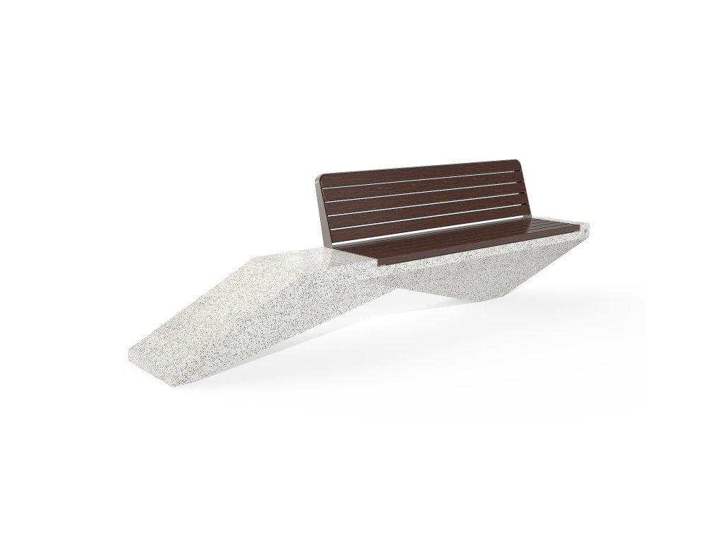 Lavice s opěradlem vyrobená z vysoce odolného betonu a exotického tvrdého dřeva - bambusu. Beton má homogenní strukturu kameniva, je vyztužen a zpevněn vlákny. Struktura kameniva je vyrobena z přírodního mramoru nebo žuly. Kameny mají specifickou velikost a lze je kombinovat v různých barvách. Povrch kameniva je jemně leštěn a vytváří pocit sametového doteku. Dodatečná úprava povrchů ochranným nátěrem činí výrobek ještě odolnějším vůči agresivním povětrnostním podmínkám a snižuje usazování nečistot. Kovové komponenty tvořící sedák a opěradlo lavice jsou vyrobeny z nerezové oceli. Sedací plocha a opěradlo jsou navrženy ve speciálně vypočítaném úhlu pro dosažení ergonomie a maximálního pohodlí. Stylové designové řešení, které se opírá o proporce a rovnováhu mezi dvěma různými materiály. Lavice je moderní dekorací městského exteriéru a pečlivě vybrané certifikované dřevo nás přibližuje přírodě.