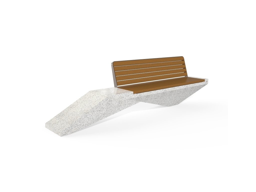 Lavice s opěradlem vyrobená z vysoce odolného betonu a exotického tvrdého dřeva - bambusu. Beton má homogenní strukturu kameniva, je vyztužen a zpevněn vlákny. Struktura kameniva je vyrobena z přírodního mramoru nebo žuly. Kameny mají specifickou velikost a lze je kombinovat v různých barvách. Povrch kameniva je jemně leštěn a vytváří pocit sametového doteku. Dodatečná úprava povrchů ochranným nátěrem činí výrobek ještě odolnějším vůči agresivním povětrnostním podmínkám a snižuje usazování nečistot. Kovové komponenty tvořící sedák a opěradlo lavice jsou vyrobeny z nerezové oceli. Sedací plocha a opěradlo jsou navrženy ve speciálně vypočítaném úhlu pro dosažení ergonomie a maximálního pohodlí. Stylové designové řešení, které se opírá o proporce a rovnováhu mezi dvěma různými materiály. Lavice je moderní dekorací městského exteriéru a pečlivě vybrané certifikované dřevo nás přibližuje přírodě.