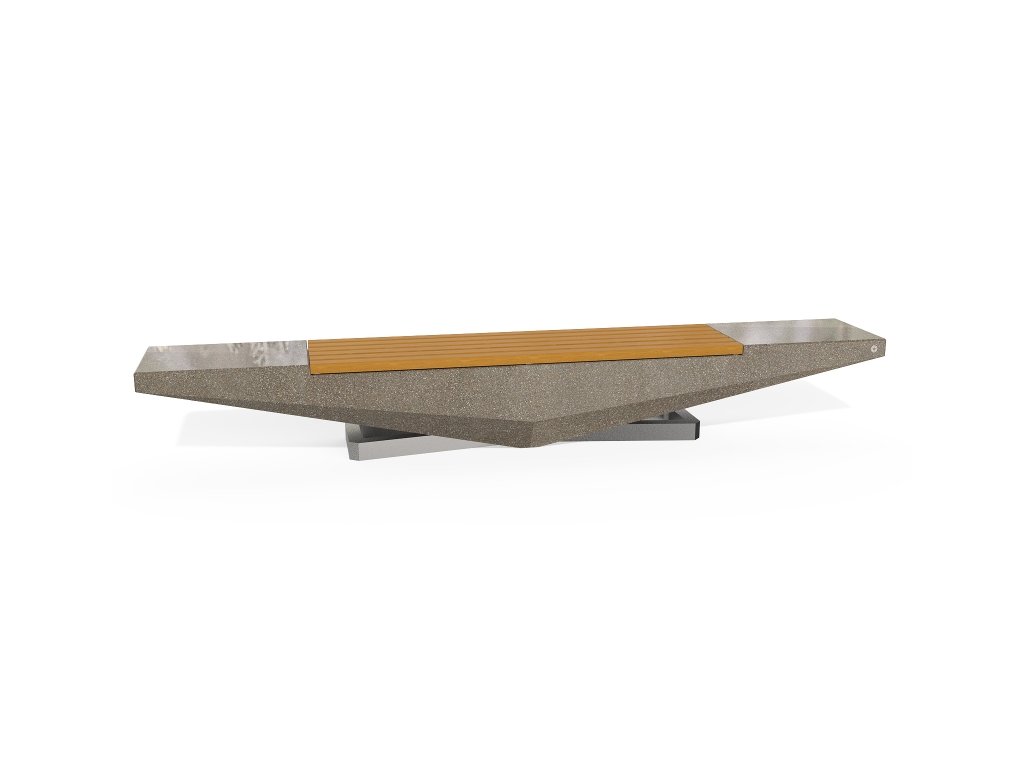 Stylové designové řešení, které se opírá o proporce a rovnováhu mezi dvěma různými materiály. Lavice je vyrobena z vysoce kvalitního vyztuženého vláknobetonu a leštěného kameniva. Strukturní mramor a žula jsou přírodní a nabízejí potenciál pro různé barevné kombinace. Betonová lavička je kombinována s certifikovaným bambusovým dřevem. Dodatečná úprava leštěného povrchu ochranným nátěrem činí výrobek ještě odolnějším vůči agresivním povětrnostním podmínkám a snižuje usazování nečistot. Lavice je moderní dekorací pro městský exteriér. Speciálně vybrané exotické dřevo přináší pocit „blízkosti přírodě“.