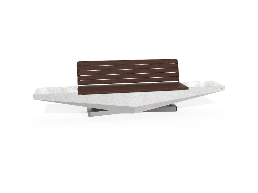 Lavice s opěradlem vyrobená z vysoce odolného betonu a exotického tvrdého dřeva - bambusu. Beton má homogenní strukturu kameniva, je vyztužen a zpevněn vlákny. Struktura kameniva je vyrobena z přírodního mramoru nebo žuly. Kameny mají specifickou velikost a lze je kombinovat v různých barvách. Povrch kameniva je jemně leštěn a vytváří pocit sametového doteku. Dodatečná úprava povrchů ochranným nátěrem činí výrobek ještě odolnějším vůči agresivním povětrnostním podmínkám a snižuje usazování nečistot. Kovové komponenty tvořící sedák a opěradlo lavice jsou vyrobeny z nerezové oceli. Sedací plocha a opěradlo jsou navrženy ve speciálně vypočítaném úhlu pro dosažení ergonomie a maximálního pohodlí. Stylové designové řešení, které se opírá o proporce a rovnováhu mezi dvěma různými materiály. Lavice je moderní dekorací městského exteriéru a pečlivě vybrané certifikované dřevo nás přibližuje přírodě.