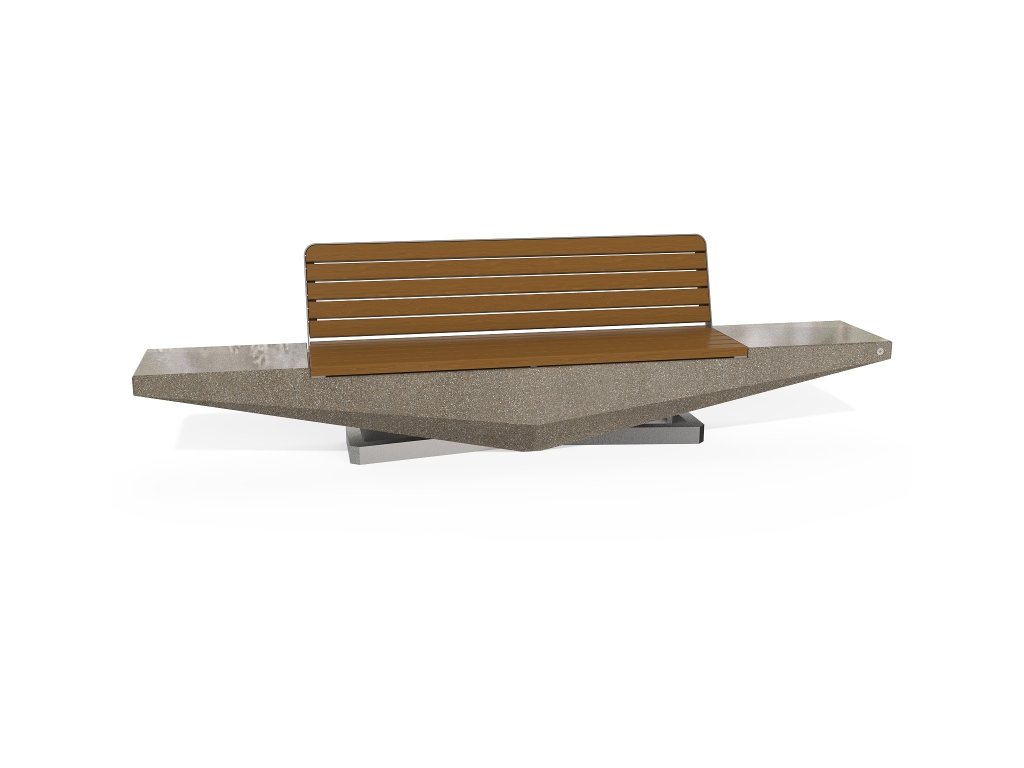 Lavice s opěradlem vyrobená z vysoce odolného betonu a exotického tvrdého dřeva - bambusu. Beton má homogenní strukturu kameniva, je vyztužen a zpevněn vlákny. Struktura kameniva je vyrobena z přírodního mramoru nebo žuly. Kameny mají specifickou velikost a lze je kombinovat v různých barvách. Povrch kameniva je jemně leštěn a vytváří pocit sametového doteku. Dodatečná úprava povrchů ochranným nátěrem činí výrobek ještě odolnějším vůči agresivním povětrnostním podmínkám a snižuje usazování nečistot. Kovové komponenty tvořící sedák a opěradlo lavice jsou vyrobeny z nerezové oceli. Sedací plocha a opěradlo jsou navrženy ve speciálně vypočítaném úhlu pro dosažení ergonomie a maximálního pohodlí. Stylové designové řešení, které se opírá o proporce a rovnováhu mezi dvěma různými materiály. Lavice je moderní dekorací městského exteriéru a pečlivě vybrané certifikované dřevo nás přibližuje přírodě.