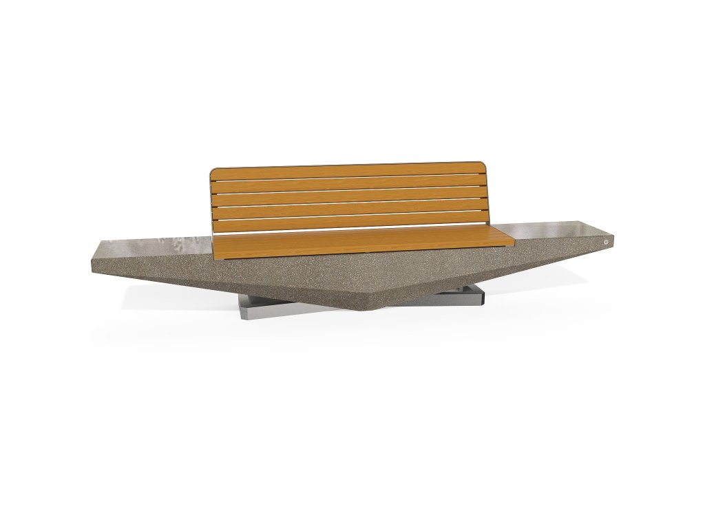 Lavice s opěradlem vyrobená z vysoce odolného betonu a exotického tvrdého dřeva - bambusu. Beton má homogenní strukturu kameniva, je vyztužen a zpevněn vlákny. Struktura kameniva je vyrobena z přírodního mramoru nebo žuly. Kameny mají specifickou velikost a lze je kombinovat v různých barvách. Povrch kameniva je jemně leštěn a vytváří pocit sametového doteku. Dodatečná úprava povrchů ochranným nátěrem činí výrobek ještě odolnějším vůči agresivním povětrnostním podmínkám a snižuje usazování nečistot. Kovové komponenty tvořící sedák a opěradlo lavice jsou vyrobeny z nerezové oceli. Sedací plocha a opěradlo jsou navrženy ve speciálně vypočítaném úhlu pro dosažení ergonomie a maximálního pohodlí. Stylové designové řešení, které se opírá o proporce a rovnováhu mezi dvěma různými materiály. Lavice je moderní dekorací městského exteriéru a pečlivě vybrané certifikované dřevo nás přibližuje přírodě.