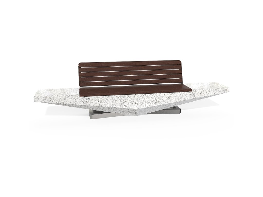 Lavice s opěradlem vyrobená z vysoce odolného betonu a exotického tvrdého dřeva - bambusu. Beton má homogenní strukturu kameniva, je vyztužen a zpevněn vlákny. Struktura kameniva je vyrobena z přírodního mramoru nebo žuly. Kameny mají specifickou velikost a lze je kombinovat v různých barvách. Povrch kameniva je jemně leštěn a vytváří pocit sametového doteku. Dodatečná úprava povrchů ochranným nátěrem činí výrobek ještě odolnějším vůči agresivním povětrnostním podmínkám a snižuje usazování nečistot. Kovové komponenty tvořící sedák a opěradlo lavice jsou vyrobeny z nerezové oceli. Sedací plocha a opěradlo jsou navrženy ve speciálně vypočítaném úhlu pro dosažení ergonomie a maximálního pohodlí. Stylové designové řešení, které se opírá o proporce a rovnováhu mezi dvěma různými materiály. Lavice je moderní dekorací městského exteriéru a pečlivě vybrané certifikované dřevo nás přibližuje přírodě.
