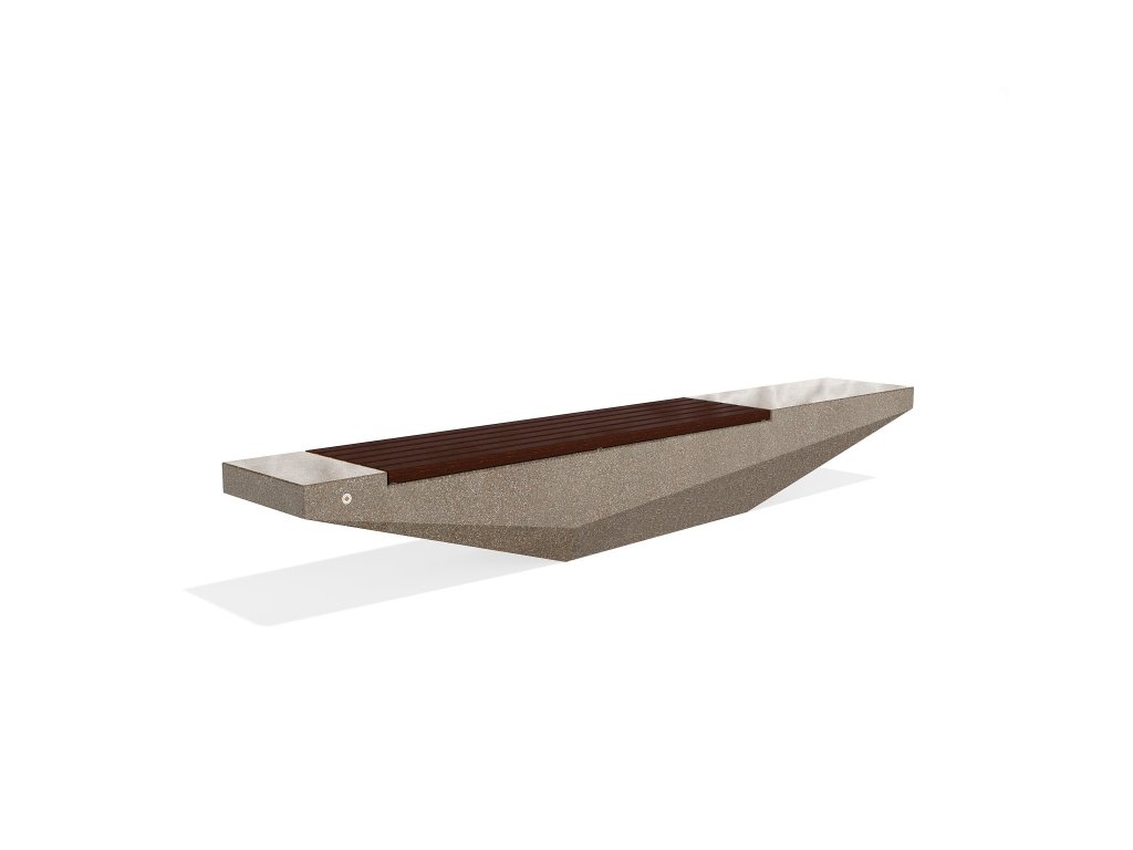 Stylové designové řešení, které se opírá o proporce a rovnováhu mezi dvěma různými materiály. Lavice je vyrobena z vysoce kvalitního železobetonu a leštěného kameniva. Strukturní mramor a žula jsou přírodní a nabízejí možnost různých barevných kombinací. Dodatečná úprava leštěného povrchu ochranným nátěrem činí výrobek ještě odolnějším vůči agresivním povětrnostním podmínkám a snižuje usazování nečistot. Lavice je moderní dekorací pro městský exteriér.