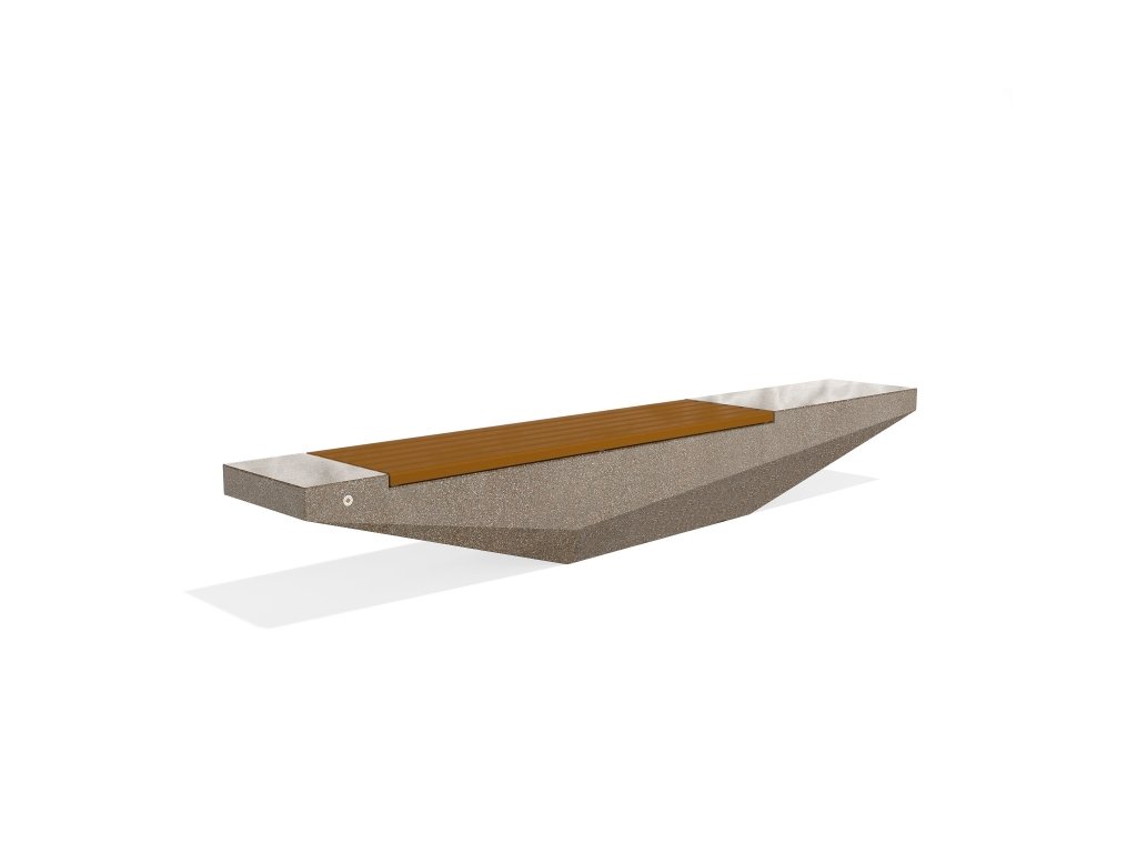 Stylové designové řešení, které se opírá o proporce a rovnováhu mezi dvěma různými materiály. Lavice je vyrobena z vysoce kvalitního železobetonu a leštěného kameniva. Strukturní mramor a žula jsou přírodní a nabízejí možnost různých barevných kombinací. Dodatečná úprava leštěného povrchu ochranným nátěrem činí výrobek ještě odolnějším vůči agresivním povětrnostním podmínkám a snižuje usazování nečistot. Lavice je moderní dekorací pro městský exteriér.