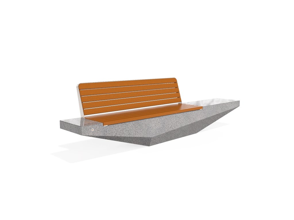 Lavice s opěradlem vyrobená z vysoce odolného betonu a dřeva. Beton má homogenní strukturu kameniva, je vyztužen a zpevněn vlákny. Struktura kameniva je vyrobena z přírodního mramoru nebo žuly. Kameny mají specifickou velikost a lze je kombinovat v různých barvách. Povrch kameniva je jemně leštěn a vytváří pocit sametového doteku. Dodatečná úprava povrchů ochranným nátěrem činí výrobek ještě odolnějším vůči agresivním povětrnostním podmínkám a snižuje usazování nečistot. Kovové komponenty tvořící sedák a opěradlo lavice jsou vyrobeny z nerezové oceli. Sedací plocha a opěradlo jsou navrženy ve speciálně vypočítaném úhlu pro dosažení ergonomie a maximálního pohodlí. Stylové designové řešení, které se opírá o proporce a rovnováhu mezi dvěma různými materiály. Lavice je moderní dekorací městského exteriéru a pečlivě vybrané certifikované dřevo nás přibližuje k přírodě.