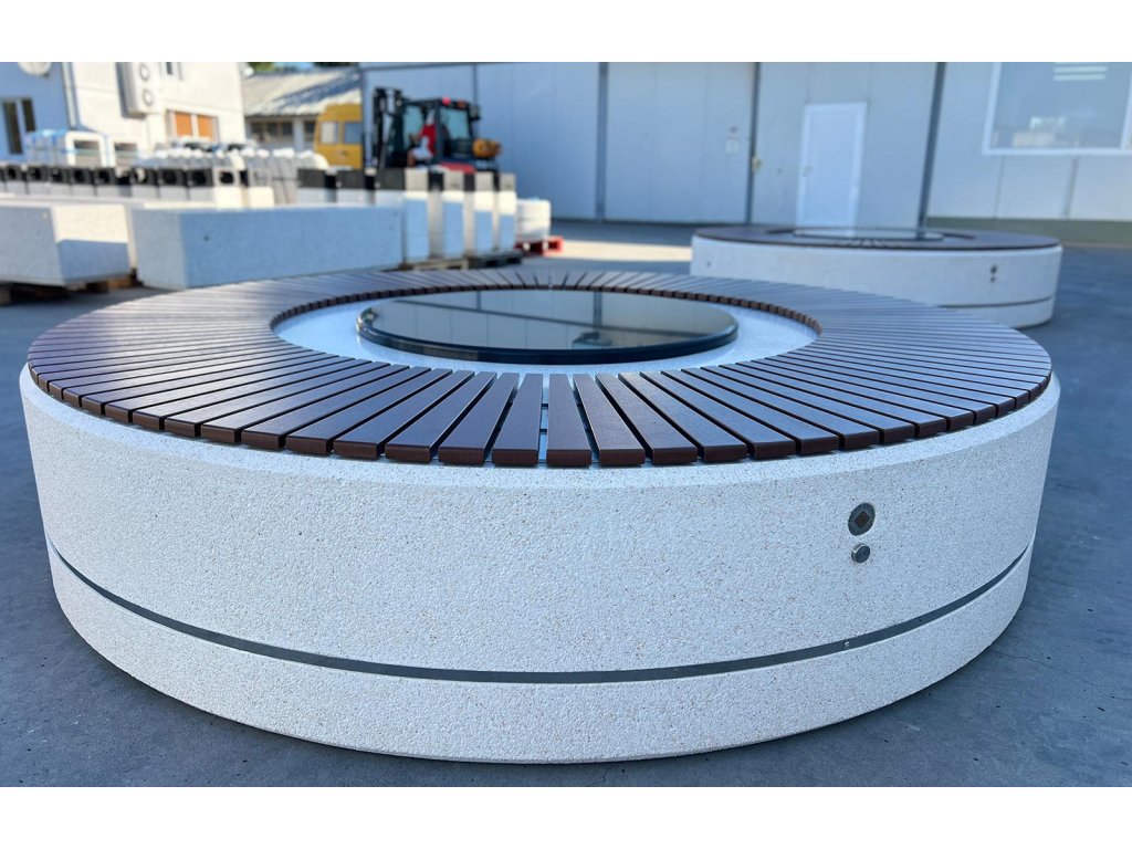 Stylové designové řešení, které se opírá o proporce a rovnováhu mezi dvěma různými materiály. Lavice je vyrobena z vysoce kvalitního železobetonu a leštěného kameniva. Strukturní mramor a žula jsou přírodní a nabízejí možnost různých barevných kombinací. Dodatečná úprava leštěného povrchu ochranným nátěrem činí výrobek ještě odolnějším vůči agresivním povětrnostním podmínkám a snižuje usazování nečistot. Lavice je moderní dekorací pro městský exteriér.
