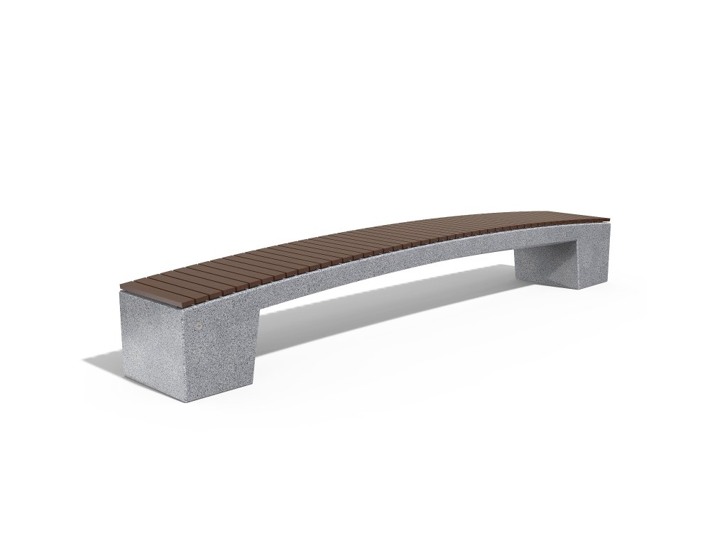 Stylové designové řešení, které se opírá o proporce a rovnováhu mezi dvěma různými materiály. Lavice je vyrobena z vysoce kvalitního železobetonu a leštěného kameniva. Strukturní mramor a žula jsou přírodní a nabízejí potenciál pro různé barevné kombinace. Dodatečná úprava leštěného povrchu ochranným nátěrem činí výrobek ještě odolnějším vůči agresivním povětrnostním podmínkám a snižuje usazování nečistot. Sedací plocha je z prken z nového materiálu ecowood Resysta®.  Díky svému výjimečnému složení materiál Resysta® nepraská, nebobtná ani se nerozkládá, čímž daleko překonává svůj přírodní vzor, ​​pokud jde o vlastnosti, trvanlivost a odolnost.