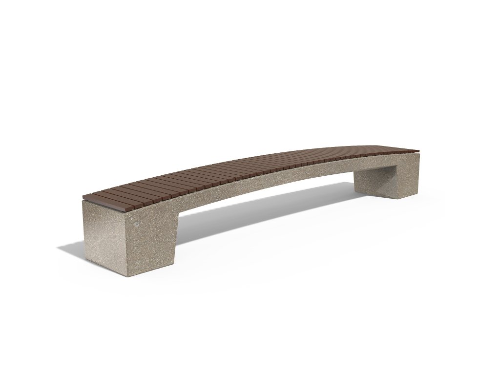 Stylové designové řešení, které se opírá o proporce a rovnováhu mezi dvěma různými materiály. Lavice je vyrobena z vysoce kvalitního železobetonu a leštěného kameniva. Strukturní mramor a žula jsou přírodní a nabízejí potenciál pro různé barevné kombinace. Dodatečná úprava leštěného povrchu ochranným nátěrem činí výrobek ještě odolnějším vůči agresivním povětrnostním podmínkám a snižuje usazování nečistot. Sedací plocha je z prken z nového materiálu ecowood Resysta®.  Díky svému výjimečnému složení materiál Resysta® nepraská, nebobtná ani se nerozkládá, čímž daleko překonává svůj přírodní vzor, ​​pokud jde o vlastnosti, trvanlivost a odolnost.