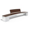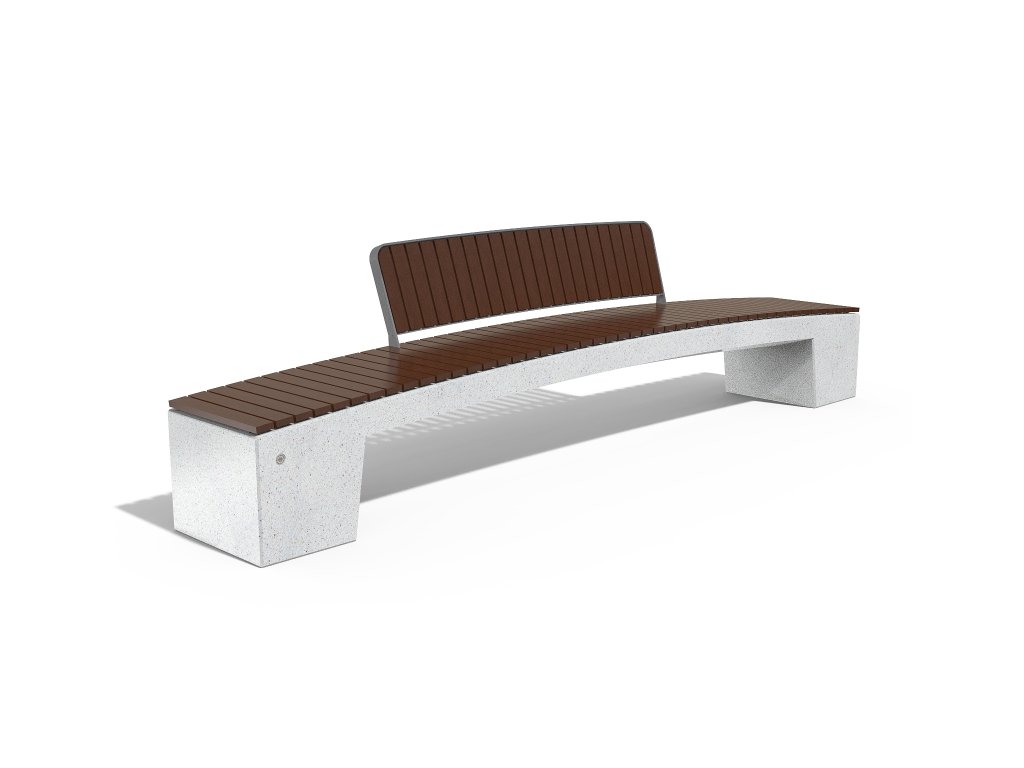 Lavice s opěradlem vyrobená z vysoce odolného betonu a ekodřeva. Beton má homogenní strukturu kameniva, je vyztužen a zpevněn vlákny. Struktura kameniva je vyrobena z přírodního mramoru nebo žuly. Kameny mají specifickou velikost a lze je kombinovat v různých barvách. Povrch kameniva je jemně leštěn a vytváří pocit sametového doteku. Dodatečná úprava povrchů ochranným nátěrem činí výrobek ještě odolnějším vůči agresivním povětrnostním podmínkám a snižuje usazování nečistot. Kovové komponenty tvořící sedák a opěradlo lavice jsou vyrobeny z nerezové oceli. Sedací plocha a opěradlo jsou navrženy ve speciálně vypočítaném úhlu pro dosažení ergonomie a maximálního pohodlí. Jsou vyrobeny z prken z inovativního materiálu ekodřeva Resysta®. Díky svému výjimečnému složení materiál Resysta® nepraská, nebobtná ani se nerozkládá, čímž daleko překonává svůj přírodní model z hlediska vlastností, trvanlivosti a odolnosti. Stylové designové řešení, které se opírá o proporce a rovnováhu mezi dvěma různými materiály.