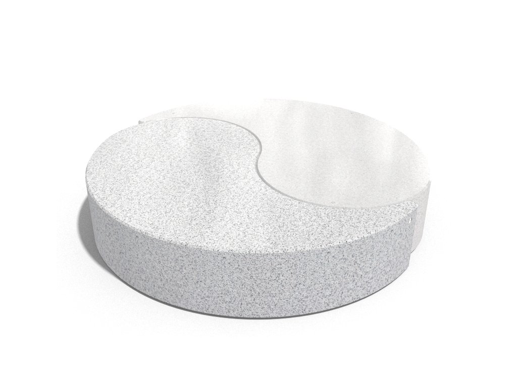 Betonová lavice ze série Yin and Yang. Je vyrobena z vysoce odolného betonu s homogenní strukturou kameniva. Struktura kameniva je složena z přírodních mramorových nebo žulových kamenů s definovanou velikostí a možností různých barevných kombinací. Boční plochy jsou reliéfní a sedací plocha je jemně leštěná. Výrobek je ošetřen ochranným nátěrem, který snižuje usazování nečistot a zvyšuje odolnost vůči agresivním povětrnostním podmínkám. Výrobek je dodáván kompletně smontovaný.